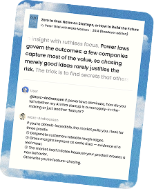 Churchill on strategy, Thiel on moats, Turing on AI—reading becomes a conversation, not a monologue.